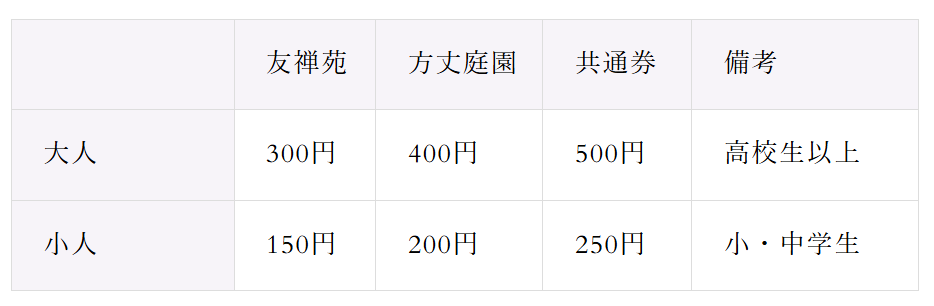ただし、友禅苑・方丈庭園の2つの庭園については、下記の拝観料が必要となります