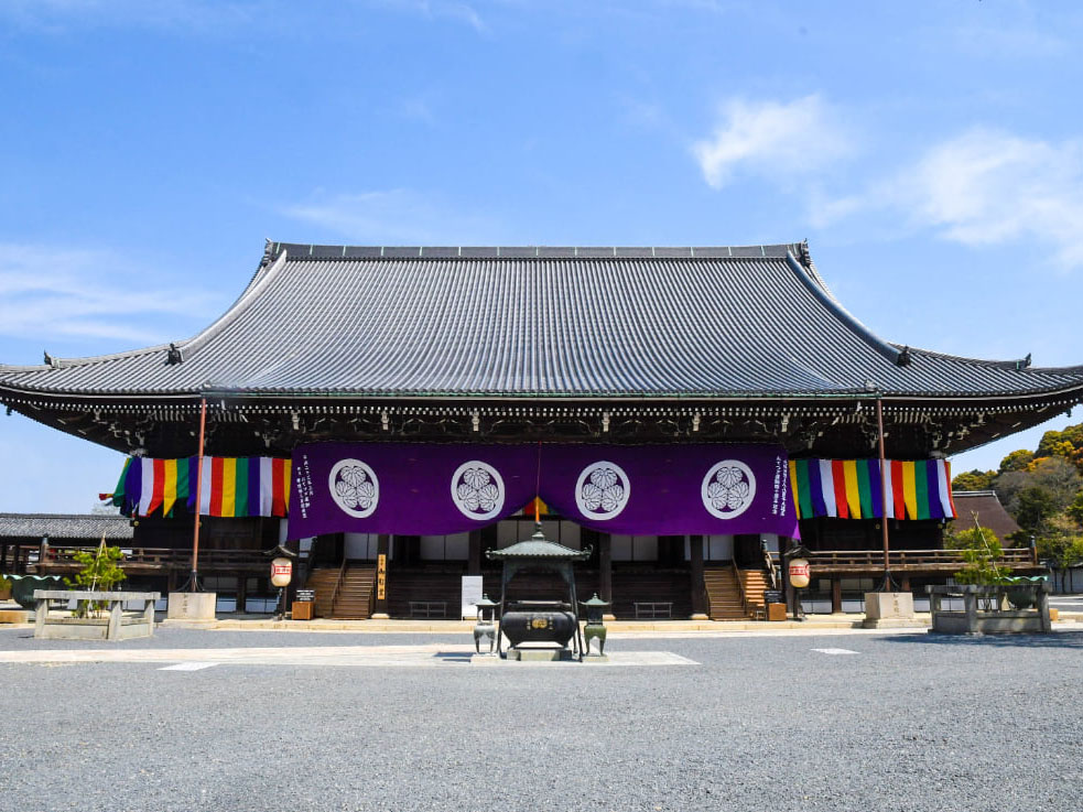 現在の御影堂は寛永16年(1639)に徳川3代将軍家光公によって建てられ、間口45メートル、奥行き35メートル 幅3メートルの外縁をめぐらし、その壮大な伽藍は、お念仏の根本道場として、多くの参拝者を受け入れてきました。